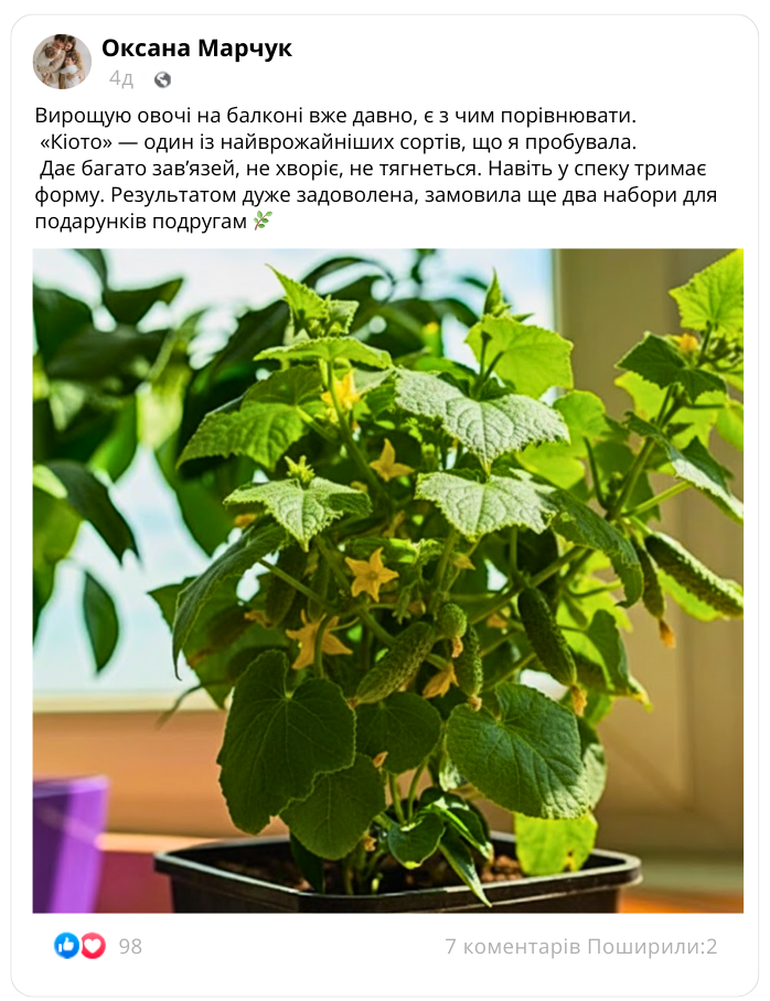 Реальний досвід вирощування кімнатного огірка «Кіото» від господарів України