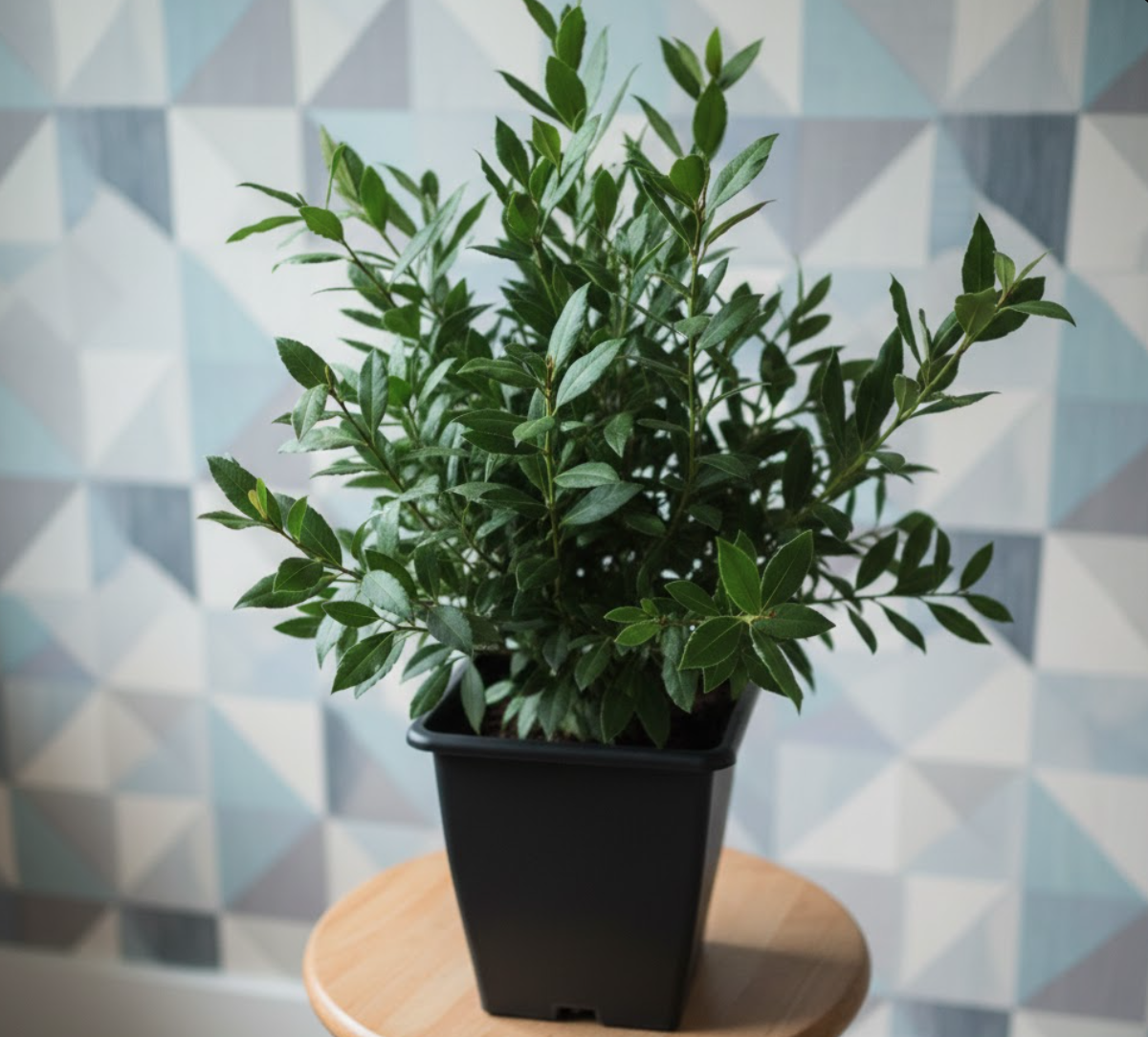 Чорний квадратний горщик з лавром — простий шлях до затишку та комфорту!